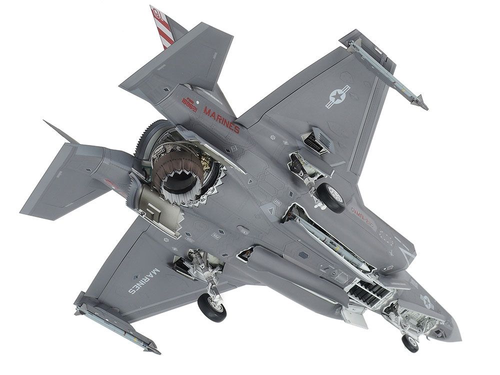 Here comes another F-35 Lightning II variant, F-35B in our legendary 1/48 Aircraft Series. Developed under the Joint Strike Fighter (JSF) program, the F-35 integrates multiple functions into its design and there are three types: the F-35A conventional takeoff and landing (CTOL) aircraft, the F-35B short takeoff, vertical landing (STOVL), and the F-35C carrier takeoff and landing (CV). The F-35B was developed as a successor of the AV-8B Harrier II, and the U.K. - which along with the United States Marine Corps. employed many Harrier II -joined this program at early stage. The F-35B is recognized as the aircraft which accomplished both supersonic flight and STOVL by the 3-bearing engine duct nozzle and lift fan, and following the F-35A, the F-35B deployment started in 2015. The first F-35B to see action was an aircraft belonging to the U.S. Marine Corps VMFA-211 "Wake Island Avengers" in Afghanistan, in September 2018. Not only the U.S. and the U.K. but also Italy employs the F-35B, and the Japan Air Self-Defense Force also plans to launch a new fighter squadron with F-35B from 2024 onward. As the F-35B can be operated from both aircraft carriers and airfields featuring short runway, many countries are considering its deployment, and the F-35B looks set to become a significant presence in the skies across the world.